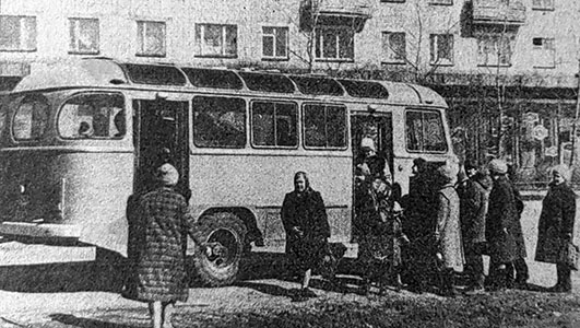 «Идет по городу автобус В ДЕНЬ ВЫБОРОВ, 26 марта открыто автобусное движение по городу. Это обрадовало горожан, особенно проживающих в отдаленных от центра микрорайонах. Преподаватель средней школы № 1 В.М. Галыбин говорит, что это большое удобство. Его поддерживает работница филиала МЭМЗа Н.И. Емельянова. — Вот только бы немного изменили график движения автобуса, — включается в наш разговор В.Г. Никитин. — Желательно, чтобы он был на Комсомольской площади в 8 часов 30 минут. А заканчивал бы движение примерно в 21 час. И населению хорошо, и автотранспортное предприятие имело бы дополнительную выручку. Некоторые предлагают расширить зону обслуживания, подвозить людей с улиц Победы, Чапаева, южной части города, за железнодорожной линией. Ф. АЙЗЯТУЛЛОВ» («Знамя», 20 апреля 1989).