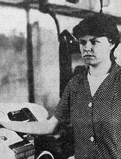 «Взята новая высота НА ВТОРОМ участке фабрики имени Володарского высоких результатов в соревновании в честь 120-й годовщины со дня рождения В.И. Ленина достигла передовая ткачиха Ангелина Семеновна Белова. Она обслуживает 28 станков, вместо 17 по норме. Основными условиями успешной работы она считает тщательную приемку смены, рациональную организацию труда, скоростное выполнение основных рабочих приемов, а также умелый уход за оборудованием. Ангелина Семеновна сама хорошо сдает и принимает смену и требует этого от своих сменщиц. А от помощника мастера М.И. Кислова она добивается тщательной наладки оборудования. Уделяя особое внимание качеству выпускаемой продукции, А.С. Белова постоянно контролирует полотна, осматривая их в течение смены по нескольку раз. Все это, вместе взятое, помогает ей выполнять задания на 108 и более процентов, всю