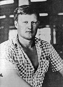 «На втором ткацком участке фабрики имени Володарского в первых рядах соревнующихся идет молодой помощник мастера Александр Юрьевич Бакаев (на снимке) из комплексной бригады В.А. Иванова. В его ведении 63 высокопроизводительных ткацких станка. Помощник мастера много внимания уделяет наладке оборудования, добивается снижения простоев станков. Среднее выполнение производственных заданий по его комплекту составляет 106-107 процентов, вся ткань принимается первым сортом» («Знамя», 21 сентября 1989).