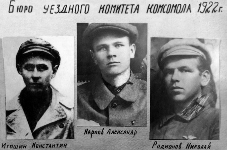 Утвердить секретарём Укома РКСМ тов. А. Карпова вместо Ник. Соколова, переведённого в Гудком РКСМ...» [ГАВО, 1923].