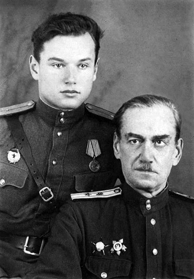 Майор медицинской службы Герасимов Михаил Георгиевич с врачами полевого госпиталя. 1945 г. Майор медицинской службы Герасимов Михаил Георгиевич с сыном Львом, младшим лейтенантом. 1946 г.