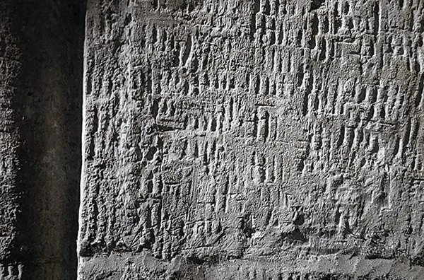 Следы подготовки поверхности белого камня под роспись в Успенском соборе времени Андрея Боголюбского. 1158-1161 гг.