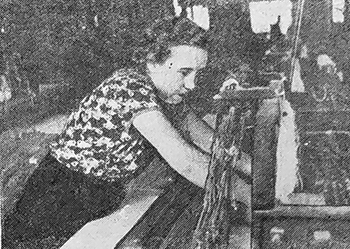 «Валентина Назарова передовая ткачиха МГНОВЕНИЕ — и челнок сменён. Менее пяти секунд уходит на его зарядку. С неуловимой быстротой устраняют ловкие руки обрыв нити. Острый глаз как бы предчувствует, что в следующую минуту станок остановится, и не успеет это произойти, как ткачиха уже около него. Её движения чётки, размеренны, совершаются по строгому ритму. Так работает ткачиха Валентина Назарова. Слава о ней разошлась по всей фабрике «Организованный труд». Готовясь достойно встретить сорокалетие Советской власти, она ежедневно вырабатывает доброкачественную ткань сверх плана. В последнее время осуществлялся переход на выпуск нового сорта миткаля. Освоение нового сорта обычно связано с трудностями и отражается на выработке. Но она нисколько не снизилась у Валентины Назаровой. По-прежнему её показатели—125—126 процентов. Передовая ткачиха заботится о том, чтобы производственный план выполнялся всей сменой. Она подтягивает отстающих, учит молодых. При переходе на новый сорт ткани и словом и делом помогала своим подругам. Её приёмы работы изучили утке 50 человек. Как правило, перенятый у Назаровой опыт помогает ткачихам поднять производительность труда. До 123—124 процентов довели её, например, Зинаида Хапугина, Валентина Матвеева и многие другие. Первая смена поммастера Леонтьева, в которой работает Валентина Назарова, продолжает оставаться одной из лучших. Всё больше становится ткачих, обслуживающих сверхтиповую норму станков. За последнее время на десяти станках стали работать Анастасия Косинова, Людмила Дерябина, Юлия Семёнова — всего 8 человек. Их выработка при этом стоит на прежнем уровне - 124—125 процентов. С. СЕРГЕЕВ» («ВК», 25 мая 1957).