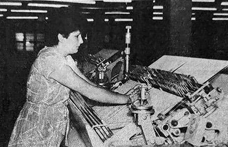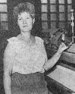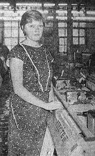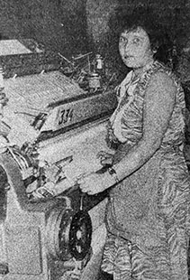 «На первом ткацком участке-фабрики «Организованный труд» успешно освоила новые станки СТБ-2-220 передовая ткачиха Вера Алексеевна Гаврилова (на снимке). Обслуживая 10 станков вместо 9 по норме, она довела выполнение сменных заданий до 110-113 процентов при отличном качестве ткани. Её имя занесено на-фабричную Доску почета.