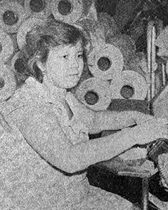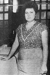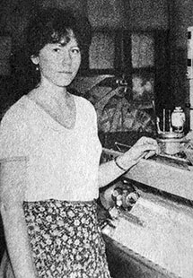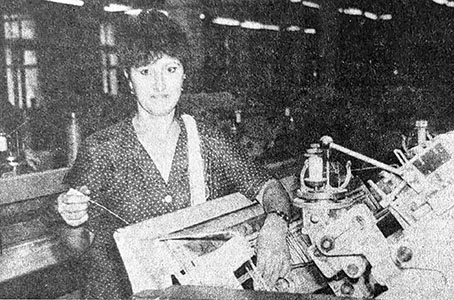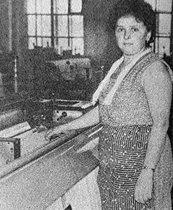 «Ткачиха фабрики «Организованный труд» Галина Васильевна Золотова (на снимке) в этом году вступила в соревнование с Тамарой Кузьминой, обязавшись выполнять план на 103 и более процентов при отличном качестве продукции. За счет рациональной организации труда и скоростных рабочих приемов она ежемесячно выполняет задание на 110 и более процентов при отличном качестве миткаля» («Знамя», 9 мая 1989).