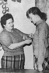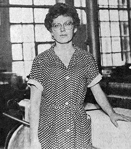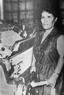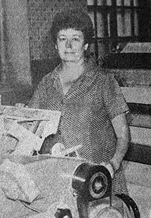 «В числе лучших ткачих-многостаночниц на фабрике «Организованный труд» неоднократно отмечалась ткачиха первого ткацкого участка коммунист Татьяна Владимировна Яковлева (на снимке). Она взялась обслуживать 18 новых пневматических станков П-125 и регулярно выполняет сменные задания на 110-111 процентов при отличном качестве продукции. Свой опыт работы Т.В. Яковлева неоднократно передавала молодым рабочим фабрики».