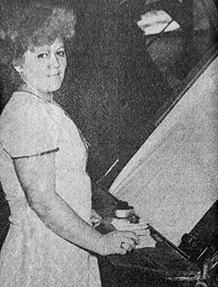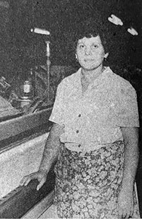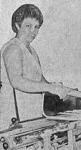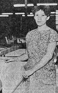 «Светлана Забазлаева (на снимке) в процессе освоения новых автоматических станков СТБ-2-220, установленных на третьем участке фабрики «Организованный труд», достигла высоких производственных показателей. Обслуживая 10 станков вместо 9 по норме, комсомолка ежесменно выполняет задание на 112 и более процентов, всю ткань сдает первым сортом.