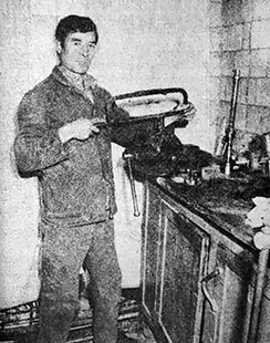 «Более двадцати лет в котельной фабрики «Организованный труд» работает слесарем Валерий Андреевич Спирин (на снимке). В этом году товарищи по работе избрали его бригадиром слесарей парогазовой службы» («Знамя», 14 января 1989).