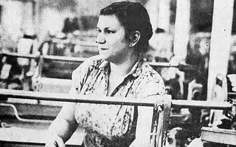 Мария Васильевна СОЛОДОВА (на снимке) работает ткачихой на первом участке фабрики. Обслуживая 28 автоматических ткацких станков, она обязалась выполнить годовое задание к 17 ноября, дать дополнительно 40 тысяч метров ткани. Ударница коммунистического труда с честью выполняет свои обязательства, всю ткань выпускает первым сортом. Свой опыт Мария Васильевна передает молодой ткачихе Любе Гордиенко. Как член цехового комитета профсоюза М.В. Солодова активно участвует в общественной жизни коллектива.