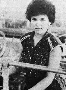 «На первом ткацком участке фабрики «Организованный труд» высоких показателей в труде достигла молодая, ткачиха Зоя АХМЕТЬЯНОВ А (на снимке). Обслуживает она 28 автоматических ткацких станков и намного превышает сменные задания. Большую помощь в освоении профессий ей оказала ткачиха Ольга Жукова» («Знамя», 9 сентября 1982).