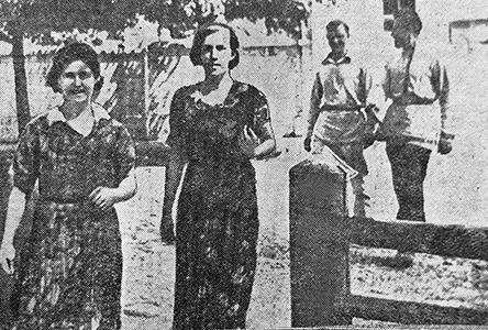 «Дружная работа обеспечила успех 21-й комплект фабрики «Оргтруд» до января 1939 года плана не выполнял. Это было главным образом потому, что за год в нем сменилось 9 поммастера и лишь один из нас, Марков, работает на комплексе продолжительное время. Только тогда, когда стали работать на комплекте мы, дело начало выправляться. Первое время нам пришлось работать не считаясь со временем, лишь бы привести в здоровое состояние оборудование, потому что станки были сильно разлажены. Сначала обратили внимание на так называемые «мелочи» — меняли клубки, поставили все гонялки на дна болта и т. п. Потом привели в порядок батаны, проступные колеса. На этом не успокоились, продолжали добиваться дальнейших успехов. Проходя по комплекту в вечерней смене видишь, что у сменщика будет большой сход основ или остались те или другие недоделки, — и тут же идешь помогать товарищу. В результате такой взаимной помощи друг другу, мы добились неплохих успехов. На хорошо налаженных нами станках ткачихи, не выполнявшие прежде норм, стали их выполнять и перевыполнять. Были случаи, что ткачихи в других комплектах с нормами не справлялись и считались там плохими работниками, а когда переходили к нам работать, становились в число передовых. Пример. Ткачиха Назарова работала в 19 комплекте и норму не выполняла. Как только перешла в 21-й комплект – стала ее перевыполнять ежедневно. Дружная работа дала нам возможность вывести свой комплект в ряды передовых. С января по 15 мая план мы выполнили на 104.3 процента, дали стране 10 тысяч метров чистосортной ткани сверх задания. Эти показатели хотя и неплохие, но нас не удовлетворяют. Приложим все силы к тому, чтобы в летние месяцы не только не снизить темпов, а работать еще лучше. Помощники мастера 21-го комплекта Марков, Петров» («Призыв», 8 июня 1939).