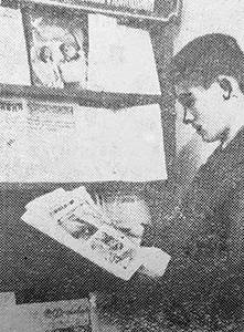 На снимке: участник художественной самодеятельности фабричного клуба Евгений Шебонилов просматривает литературу к фестивалю.