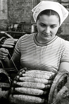 «ЖЕНЩИНЕ, МАТЕРИ, ТРУЖЕНИЦЕ посвятили свой вечер рабочие второй смены фабрики «Организованный труд». Под звуки духового оркестра поднимаются на клубную сцену женщины, чей жизненный путь прошел через суровые годы войны. Это медсестра Лина Михайловна Кудрякова, воспитатель детского сада № 2 Валентина Ивановна Грехова, ткачихи Лидия Михайловна Демакова и Анна Васильевна Клокова, пенсионерка Клавдия Осиповна Абрамова. Горе войны оставило на них свой жестокий след морщинами на лицах, сединой в волосах. В притихший зал падают трудно выговариваемые горькие слова об увиденном, о пережитом…