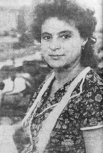 «Эльвира Ивановна Кузнецова (на снимке) работает ткачихой на третьем участие фабрики «Организованный труд». Молодая производственница обслуживает десять высокопроизводительных станков СТБ-2-220 вместо девяти по норме, а в летние месяца расширяет свою зону до пятнадцати станков. За шесть лет работы на предприятии молодая ткачиха отлично освоила свою профессию и за счет большого опыта и рациональной организации труда выполняет сменные задания на 111-112 процентов, обеспечивает выпуск первосортной продукции» («Знамя», 9 августа 1990).