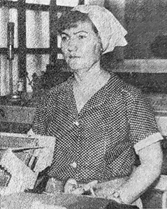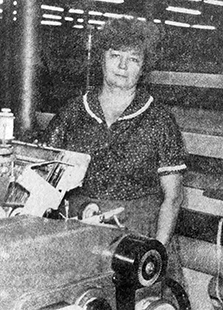 «На втором ткацком участке фабрики «Организованный труд» установлены высокопроизводительные пневматические станки П-125. В числе первых освоила новую технику ткачиха Мария Васильевна Солодова (на снимке). Работает она в смене мастера И.В. Столяровой, обслуживает 18 станков. Заботливое, добросовестное отношение к делу в сочетании с высоким мастерством позволяют ей выполнять производственные задания на 109 и более процентов, всю ткань сдавать первым сортом. Мария Васильевна неоднократно выходила в число победителей социалистического соревнования.