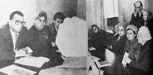 «В ТУ МАЙСКУЮ субботу поселок Оргтруд жил своей тихой утренней жизнью. Редкие продавцы и еще более редкие покупатели на импровизированном рынке лучше всяких слов говорили, что время «деловой» жизни еще не наступило. Однако я ошибся. В вестибюле поссовета уже стояла группа людей (в основном женщин) и заинтересованно рассматривала подъехавшую редакционную машину. Они, конечно, ждали не корреспондентов, но, увидев нас, поняли, что и депутат Кондрюков, на прием к которому они пришли, вот-вот подъедет. В этом поселке кандидат в депутаты Кондрюков Геннадий Федорович проводил свою первую в нашем районе встречу с избирателями. Сюда же приехал он, чтобы провести свой первый прием избирателей в качестве народного депутата республики. Поначалу прием был рассчитан на час, от силы — на полтора. Оргтрудовцев записалось не так уж и много, но, как говорят, земля слухом полнится и на прием приехали избиратели из Камешкова, Владимира. Оргтрудовцы же без предварительной записи шли на прием как по одному, так и большими группами. Кто-то из присутствующих на приеме по поводу владимирцев и камешковцев высказал, что это, мол, не наши, на что депутат ответил, что все избиратели наши и шел прием до тех пор, пока в приемной исполкома поссовета не осталось ни одного человека. ВДОВЬИ СЛЕЗЫ. Так можно охарактеризовать всю сложную атмосферу этого приема. Одна за другой заходят к депутату женщины. Большинство из них — престарелые. Многие плачут и, прежде чем начать беседу, Кондрюкову приходится их успокаивать. Вопросов множество, но все их можно разделить на три основные группы: жилье, социальная несправедливость и бездушие, безответственность тех, кто по долгу своей службы обязан был разрешить многие проблемы, не вынуждая людей обращаться к депутату верховного органа власти. Вот типичный пример. Заходит В.А. Денисова и рассказывает о своих мытарствах со строительством дома: кирпича нет, цемента нет, леса нет. Выясняется такая картина: в поселке строится 36 домов, а ни в исполкоме поссовете, ни на фабрике, ни в торговле нет ясности, как решать возникающие в связи с этим проблемы. Общими усилиями дают заявку на 500 тысяч штук кирпича. В торговлю дают чуть больше половины и они опускают руки: на нет, мол, и суда нет. До чего же глубоко въелась в нас психология маленького человечка, раба обстоятельств. О приоритете в обеспечении индивидуального строительства говорят много, а делают мало. Люди хотят строить дома своими силами, за свои деньги, а те, кто «сидит»» на фондах, по старому принципу «режут» заявку на половину. Может, действительно у «государства» нет ни одного лишнего кирпичика? Не верят, да и не могут оргтрудовцы в это поверить. Буквально в нескольких сотнях шагов от исполкома поссовета решили строить многоквартирный жилой дом. Преследуя лишь свои, ведомственные интересы, строители предлагают снести добротные кирпичные сараи другого многоквартирного дома. И добились ведь своего. Строят рядом с этими сараями другие, более дорогие, хотя жителям они совсем не нужны. Их вполне удовлетворяют старые, которые, кстати, стройке совсем не мешают. А вот поди ж ты. Решили во благо... себе и строят. И стройматериалы, которых нет, нашли. Потому что это — «государственное» строительство. Хотя государственного подхода здесь и в помине нет. Забегая вперед, скажу, что после приема 