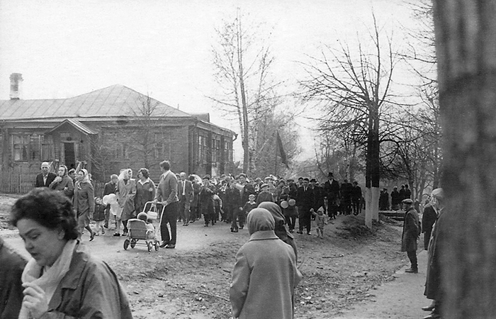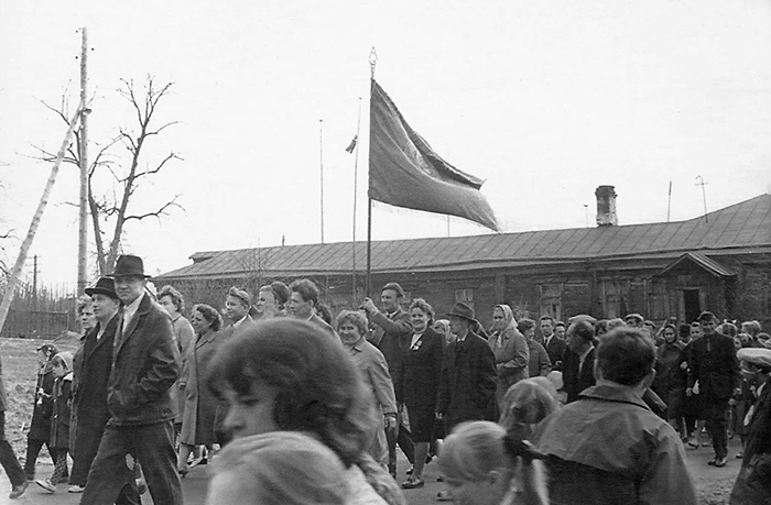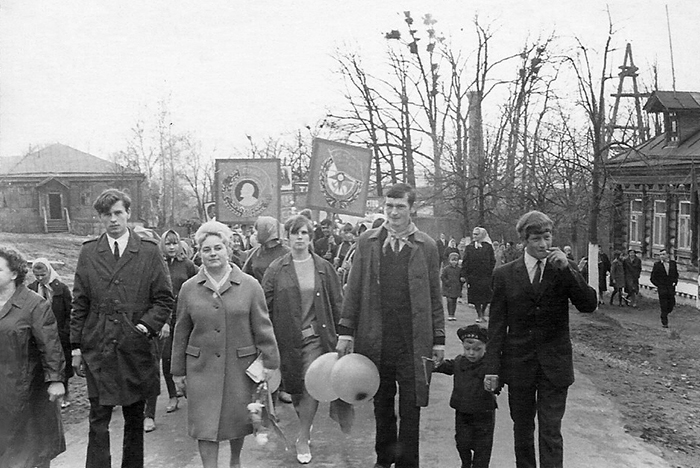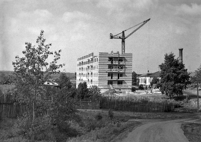 «В одном месте строительные работы заканчиваются, а в другом — неподалеку от фабрики — только начинаются. Здесь заложен фундамент очередного 70-квартирного дома. Под руководством прораба К. Клочкова монтажники ведут кладку стен. Дружно работают на новом объекте каменщики А. Агрофенин, Ю. Шувалов, Ю. Ашельбрейнер, бульдозерист А. Марков» («Знамя», 8 августа 1970).