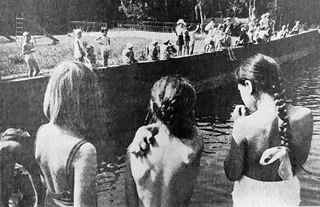 В жаркий полдень. Купальный бассейн в пионерском лагере «Чайка» фабрики «Организованный труд».