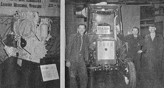 Эталонный дизель Д-120-44; слесари-сборщики ТСК демонстрируют эталонный трактор Т-30-69.