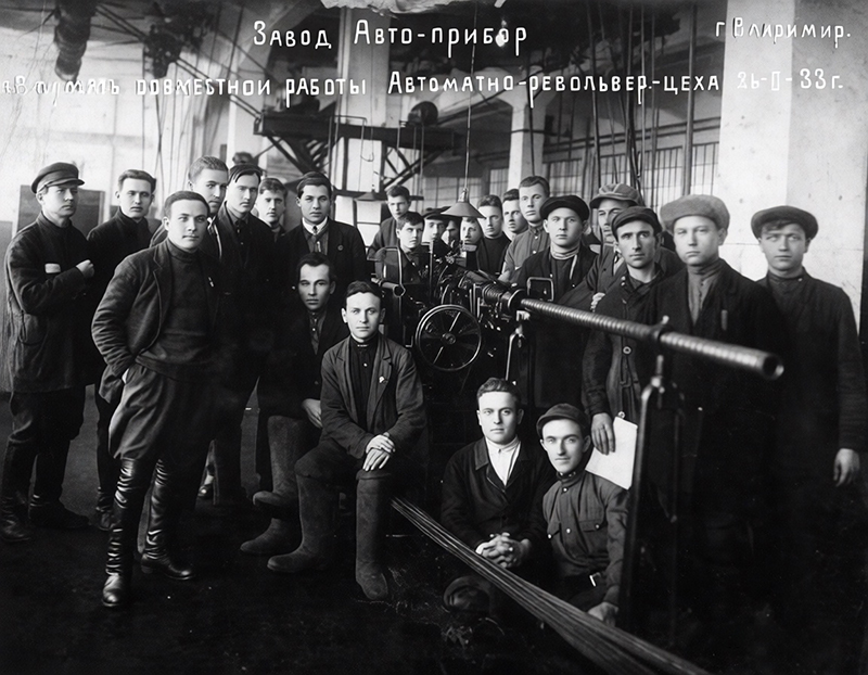 «Бригада инструментального цеха по изготовлению и ремонту штампов для вновь осваиваемого прибора — стеклоочистителя в составе Савинова, Зеленова и Елизарова, под руководством иностранного специалиста Рауера, объявила себя ударной и обязалась: — выпускать штампы новые и ремонтировать старые без задержки. — Вырабатывать штампы доброкачественного порядка, не допуская брачности. Вместе с этим бригада взяла под свой надзор импортный сверлильный станок, который обязуется держать в хорошем состоянии. *** Шеногин на «Автоприборе» работает с февраля 32 г. Окончив семимесячные курсы при влад. мехтехникуме, по приходе на завод Шеногина прикрепили к бригаде — лучшего бригадира по изготовлению форм для цеха литья под давлением — т. Алексеева. При энергичной работе и под умелым руководством со стороны Алексеева, Шеногин сумел в течение 5—6 месяцев освоить технику изготовления форм. На сегодняшний день вновь изготовлены и сданы в эксплуатацию две формы. Они работают удовлетворительно. Шеногин происходит из семьи рабочего, — отец столяр. Учился в школе 3 года, не докончи, ушел на заработки и поступил к частному трактирщику, работал «мальчиком», затем официантом. После этого 2 года учился и работал по шорному делу, а затем в течение пяти лет, до момента призыва в ряды РККА на действительную службу, работал учеником, после столяром. Тов. Шеногин является лучшим ударником инструментального цеха, три раза премировался за ударную работу в производстве. В настоящее время под руководством тов. Алексеева и вместе с ним работает над освоением и изготовлением новой формы — основания спидометра. На заводе тов. Шеногин вступил в ряды ВКП(б)» («Призыв», 3 марта 1933). «Автоприбор» шефствует над борисовским сельсоветом, в котором имеются два колхоза. Со стороны организаций завода шефство над колхозами осуществляется крайне плохо. Несмотря на то, что подготовка к весенне-посевной кампании в полном разгаре, партколлектив (секретарь тов. Морозов), завком (председатель тов. Крюков) не выслали ни одной рабочей бригады в колхозы для оказания им помощи в сборе семян, ремонте с.-х инвентаря. Не оказано помощи колхозам и в организации труда, т. е. не проведен обмен опытом работы бригад завода в развертывании социалистических методов труда. В шефстве «Автоприбора» над колхозами существует полнейшая обезличка. Ни один цех завода не прикреплен к колхозу, бригаде, в результате чего рабочие не знают работы колхозов. Нет по существу также и ответственного лица за развертывание шефской работы. Тов. Морозов говорит, что им выделен член партии тов. Некрасов, между тем он по шефству ничего не делает, а партколлектив на это смотрит сквозь пальцы. Не оказывается помощи организациями завода колхозам и по части культурно-просветительной работы. Решения январского пленума ЦК и ЦКК ВКП(б), речи тов. Сталина организации завода помогли колхозам проработать на правлениях, на общих колхозных собраниях, доведение их же до каждого колхозника, посредством проработки в бригадах не было. Плана по шефской работе ни одна из организаций завода не имеет. Из всего этого вывод такой: парт-профорганизации «Автоприбора» не уделяют достаточного внимания селу, не болеют по-большевистски за успех подготовки и проведения посевной кампании подшефными колхозами» («Призыв», 16 марта 1933). «На заводе «
