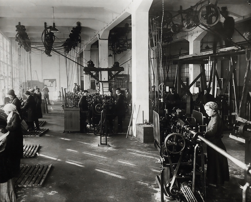 Автоматно-револьверный цех завода «Автоприбор». 1932 г. Группа рабочих завода «Автоприбор» у станка-автомата. 26 февраля 1933 г.