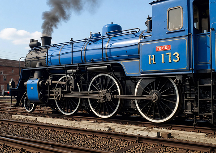 Голубой паровоз Н—173. Рабочие «Автоприбора» шефствуют над паровозным депо станции Владимир. По инициативе автоприборовцев паровозы лучших водителей хорошо оборудованы и окрашены в голубой цвет.