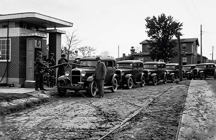 Автомашины горьковского завода берут бензин во Владимире. До революции по Владимирке шли тысячи революционеров в Сибирь на каторгу. Сейчас между Москвой и Горьким строится гудронированное шоссе, по которому пробегают сотни автомобилей, выпускаемых горьковским автозаводом.