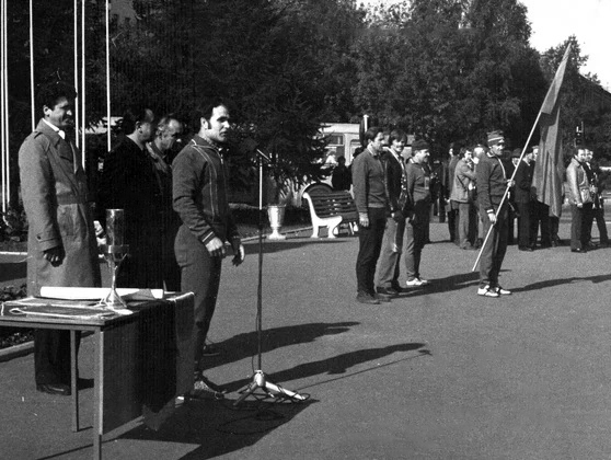 Виктор Ермаков выступает на церемонии во время проведения пробега во Владимире в 1988 году. Ермаков Виктор Николаевич. Умер в 2022 году.