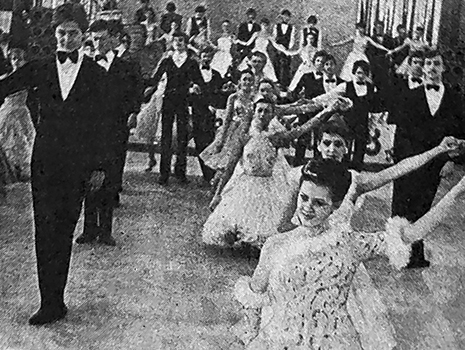 «Зимняя фантазия» Нет нужды представлять студию современного танца «СТЭП» и ее бессменного руководителя Владимира Трубина. Пропаганда танцевальной культуры — вот одна из главных задач этого талантливого коллектива. Недавно «СТЭП» и дискоклуб «Субботний вечер» завода «Электроприбор» пригласили всех любителей бального танца на праздник «Зимняя фантазия-83». Зрители увидели выступление участников студии «СТЭП», познакомились с искусством мастеров международного класса по бальным танцам, сами потанцевали в современных ритмах. Один из гостей «Зимней фантазии-83» фотокорреспондент И. Таболин сделал этот снимок с праздника: вы видите парад участников» («Комсомольская искра», 1 апреля 1983).