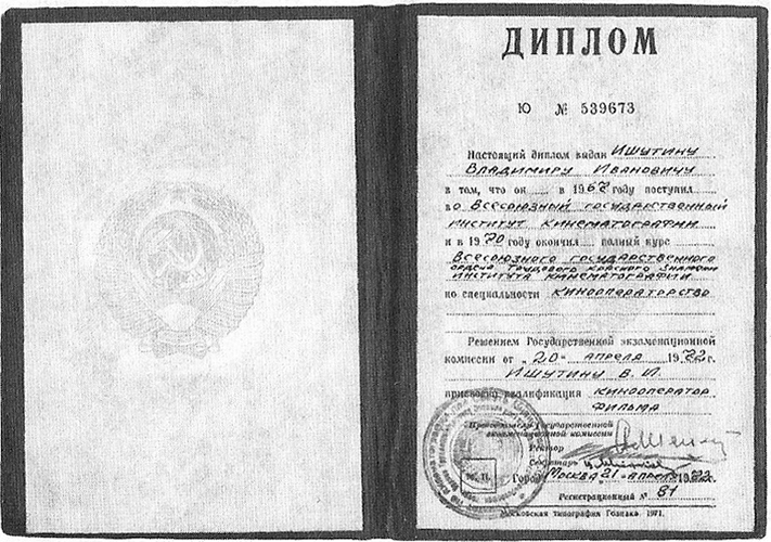 - В моих руках диплом, подтверждающий, что с ноября 2005 по декабрь 2006 г. я прошел обучение в мастер-классе по специальности «Фотоискусство», выданный заслуженным деятелем искусств, членом Союза кинематографистов России В. Ишутиным. Владимир Ишутин - это великий жизнелюб, кинооператор-документалист, художник, скульптор, немного певец, немного поэт - искрометная творческая натура.