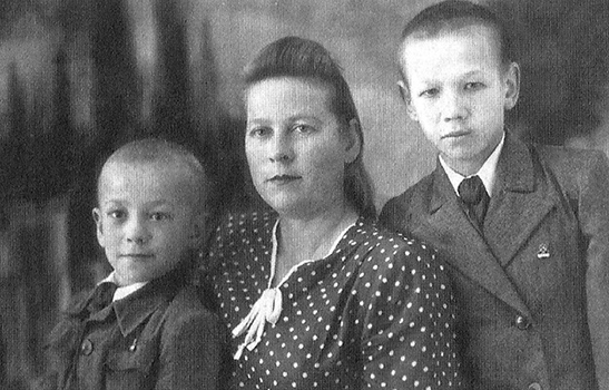 Клавдия Павловна с сыновьями Володей и Валерой. Начало 1950-х гг.