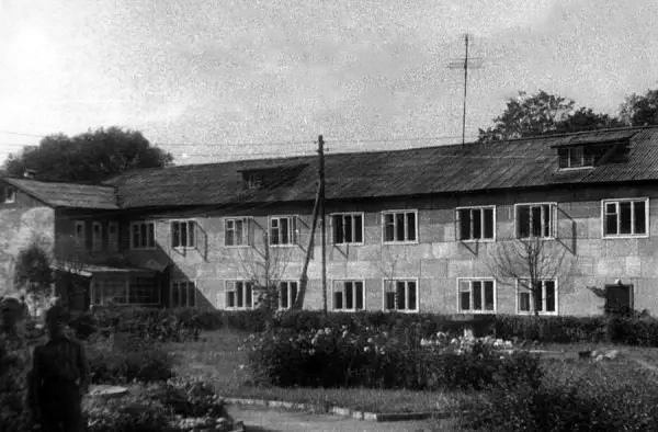 Самое первое жилое сооружение в Крутояке. Поначалу жилым был только второй этаж, на первом располагалась столовая. На этаже примерно 20 трехместных номеров. В комнатах только минимально необходимая мебель, телевизора нет. Есть центральное отопление, санузлы - по два на этаж. На фасаде корпуса слева от входа мозаикой выложена карта местности. Некоторое время главный корпус использовался как заводской санаторий-профилакторий.