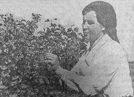 По инициативе Н.П. Егоровой колхоз «Красная постройка» развел сад. Егорова осматривает кусты смородины в колхозном саду.