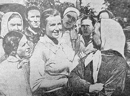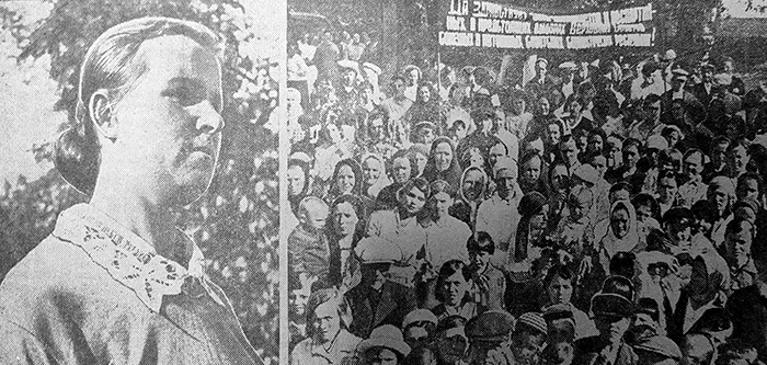 Н.П. Егорова - председатель колхоза «Красная постройка» — дает указания пахарю тов. Ермилову В.П. Выступление Егоровой Н.П. на митинге в Кутуковском сельсовете и общий вид митинга. Егорова беседует с колхозниками.