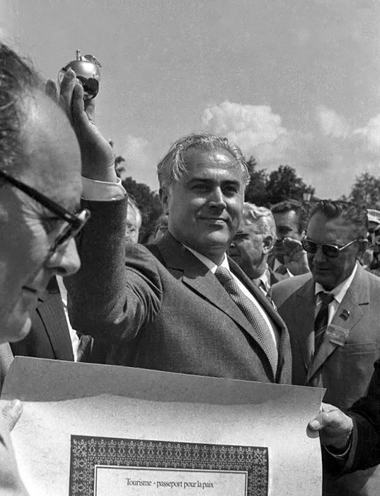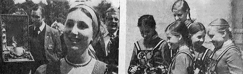 «ДЛЯ ВРУЧЕНИЯ «ЗОЛОТОГО ЯБЛОКА» в нашу область прибыла большая группа руководящих работников ФИЖЕТ и представителей национальных секций федерации из более чем тридцати стран. Гости были тепло встречены на владимирской земле. Президенту федерации Реми Леру (Франция) и международному комиссару ФИЖЕТ по призу «Золотое яблоко» Жоржу Оору (Бельгия) были преподнесены традиционные хлеб-соль» («Комсомольская искра», 19 июня 1983).
