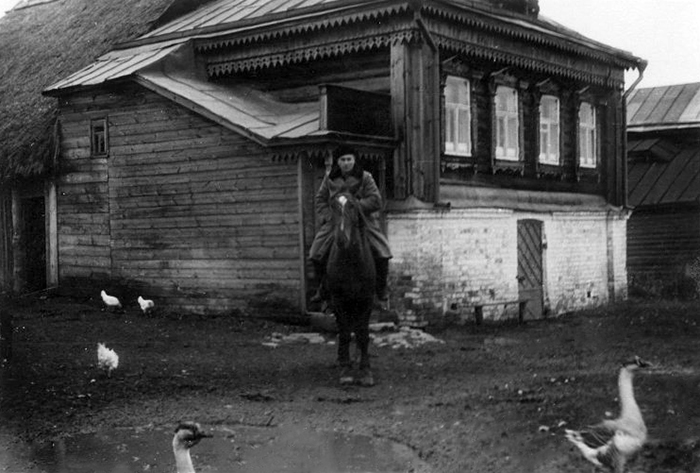 Курилов Григорий Матвеевич у здания правления колхоза в с. Порецком. 1952 г.