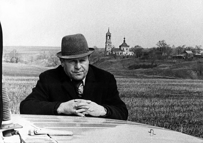 Курилов Григорий Матвеевич на фоне с. Порецкого. 1975 г.
