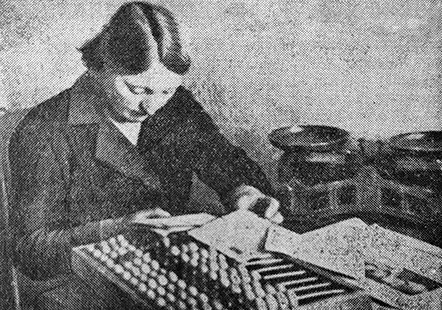 В селе Сеславском открылось агентство связи. Заведующая агентством К.И. Мягкина за сортировкой почты. 1940 г.