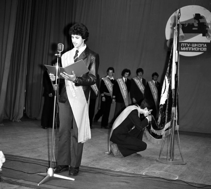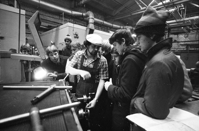 «Посвящение в рабочий класс Это стало традицией. В один из летних дней под звуки оркестра маршируют по магистрали заводского поселка — улице Горького крепкие, здоровые и веселые девчата и парни — выпускники профессионально-технического училища. Бодрым шагом идут они на площадь Ленина, чтобы там стать участниками торжественного ритуала — праздника посвящения в рабочий класс. У подножья памятника ложатся живые цветы — дань глубокой любви и уважения к великому Ленину. Здесь директор ГПТУ тов. Хашов отдает руководству завода рапорт о трудовой пополнении армии тракторостроителей. А потом праздник переносится в актовый зал заводского Дома культуры. Один за другим поднимаются на сцену руководители училища и предприятия, лучшие выпускники ГПТУ: токари и фрезеровщики, сверловщики и сборщики. Сегодня у всех находящихся в этом зале, очень волнующий день. В заводскую семью вливается новый отряд (более 300 человек) рабочих» («Тракторостроитель», 15 июля 1983).
