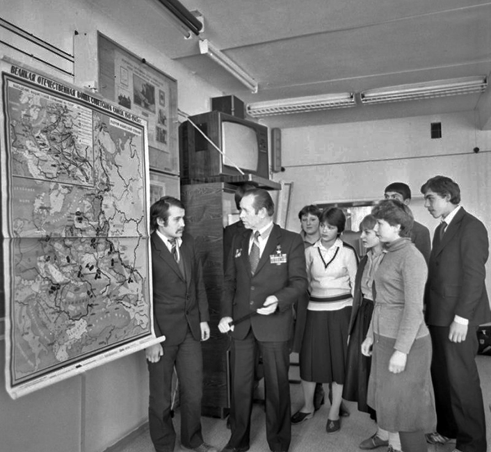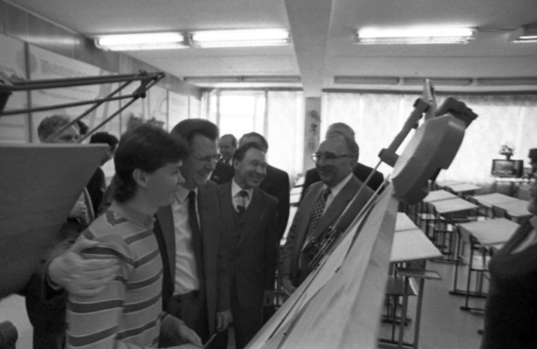 марта 1983 года. Эта дата войдет в историю ГПТУ-7 как важное событие. Положены последние штрихи, и новое здание училища, словно летом улица после дождя, смотрится во всей своей красе. Погода не баловала в этот день, но на лицах ребят, представителей завода, гостей, всех собравшихся перед входом в училище на митинг, радостные улыбки и нетерпение. Митинг открывает секретарь парткома завода В. Красильщиков. Затем слово берут секретарь обкома КПСС Н. Шагов, директор объединения А. Гришин, выпускник училища 1947 года, кавалер двух орденов кузнец-штамповщик А. Кузнецов. С ответным словом выступила учащаяся третьего курса Алла Агеева. Звучит оркестр, и управляющий строительным трестом № 94 А. Иванов вручает директору училища В. Хашову символический ключ. Перерезается ленточка. Войдемте вместе со всеми в новое училище. Сквозь большие окна и прозрачные зенитные фонари в крыше потоками врывается свет. Обилие его создает приподнятое настроение. Зенитные фонари — окна в крыше — это лишь одна из архитектурных особенностей здания. Современным проектом предусмотрено все: мастерские, классы, столовая, тир, спортзал, телестудия, актовый зал — все это под одной крышей. Очень удобно. Оборудование классов самое современное. Бросается в глаза темно-зеленая доска, вернее то, что раньше называлось доской. Теперь это целый агрегат. Легким усилием площадь доски можно увеличить в 2 — 3 раза, опустить и поднять ее по росту. Раздвинув половинки, обнаружим экран, на который через кодоскоп можно проецировать различные тексты. Ряд дополнительных устройств для доски, конечно, немного усложняет действия, но педагогу и ученикам стало гораздо удобней, расширились возможности. Рядом с доской стоит цветной телевизор — предусмотрено телевизионное вещание внутри училища. Каждый класс кино- и радиофицирован» («Тракторостроитель», 18 марта 1983).