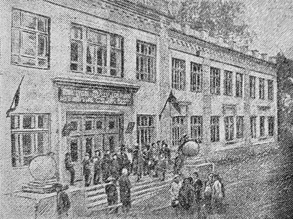 «В ШКОЛЕ ИМЕНИ А.С. ПУШКИНА Городская неполная средняя школа имени А.С. Пушкина построена в прошлом году. И за один год школа до неузнаваемости изменила свое лицо. В этом году в школе открыты и оборудованы новые кабинеты, приобретено все необходимое оборудование для физического кабинета. Для физкультурных занятий приобретено оборудование: турники, трамплины, канаты и т. п. Куплен передвижной киноаппарат. На занятиях учащимся будут демонстрироваться картины по истории СССР, литературе и другие научные картины. Классы школы и учительская в этом году заново оборудованы и укреплены» («Призыв», 17 сентября 1937).