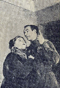 Колоритна Е. Болли в роли жены Цветкова — Марфы — коменданта дома. Внешне суровая и крикливая, эта простая русская женщина обладает необыкновенно мягким сердцем, большой задушевностью и чуткостью. Артистка Е. Болли хорошо акцентировала те места роли, где Марфа укоряет своего, вернувшегося из-за границы, мужа: «Ты отстал там, в Западной Европе...». Необходимо отметить еще Н. Шабалова в роли капитана Рублева. Артист показал образ командира Советской Армии — собранного, волевого, возвышенного в своих действиях и чувствах. С большим тактом Н. Шабалов показывает, с какой неизбежностью капитан Рублев должен был отойти от «куклы» — Нины и разгадать в самоотверженной Настеньке родственную ему душу. Пьеса Назарова, с ее поверхностной обрисовкой психологии советских людей в героический период обороны Москвы — недостаточно благодарный материал, даже дня опытного театра. Несмотря на это, актеры Вязниковского драматического театра сумели донести до зрителя все то ценное, что содержится в «Младшей сестре». Очень досадны в спектакле небрежности постановки (например — радио говорит, когда оно уже должно умолкнуть и т. д.). С подобного рода изъянами коллективу театра надо повести самую решительную борьбу. З. ЛЬВОВ» («Призыв», 2 августа 1947). «ЧЕЛОВЕК С ТОГО СВЕТА» Пьеса под таким названием В. Дыховичного и М. Слободского написана с большой политической заостренностью. Семья рабочего Матвеева взяла на воспитание испанскую девочку Анну-Марию. Она — дочь художника Педро Лангара, друга сына Матвеева, полковника Красной Армии. Педро считали убитым в боях за республиканскую Испанию, но он на самом деле эмигрировал в Америку. Через много лет Педро приехал в Советский Союз в надежде отыскать свою дочь. Пребывание в Америке наложило на него тяжелый отпечаток. Теперь перед нами уже не борец-революционер, а купленный и развращенный капитализмом обыватель-делец. Педро Лангара появляется как бы «с того света». Расставшись со своей дочерью, когда ей было три-четыре года, Педро встречает ее семнадцатилетней девушкой. Анна-Мария — пылкая, честная, правдивая—впитала в себя все особенности нашей социалистической страны. Комсомолка, развитая, передовая девушка, она свято хранит память об отце-герое и верит своему второму отцу — «папе Саше», полковнику Матвееву. И когда Педро, скрывающий вначале от Анны-Марии, что он ее отец, хочет вернуться в Америку, раскрывается глубокая пропасть, отделяющая пришельца «с того света» от его дочери. Комедия В. Дыховичного и М. Слободского интересна по сюжету и очень сценична. К сожалению, вязниковский театр не смог использовать всех преимуществ пьесы. Как положительное явление в спектакле, нужно отметить исполнительницу роли Анны-Марии — М. Годлевскую. У нее много сценического темперамента, теплоты. Она правильно трактует образ Анны-Марии — испанки по крови и советской девушки по строю ее мыслей и чувств. Хороший грим и удачные костюмы создают хорошее впечатление и от внешнего облика артистки. Нельзя того же сказать о других исполнителях. А. Шкарупа в роли полковника Матвеева и Ф. Британский в роли Педро — очень сухи. Они формально докладывают текст, их движения зажаты. Страстная полемика двух друзей о том, как идет жизнь у нас и «у них», проходит как скучный отчет. Идея столкновения двух миров, двух систем не доносится до пу