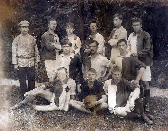 Футбольная команда «Уран». 20-е годы Молодёжь особенно увлекалась футболом. Созданная в посёлке футбольная команда «Уран» была одной из лучших во Владимирской области. В округе все знали вратаря Степана Корнилова, капитана команды Василия Корнилова, нападающих и защитников Николая Чувашева и Ивана Кириллова. «Оргтруд» - Владимир. 15 августа 1925 г. во Владимире встретились две команды: «КИМ» и одна из лучших рабочих команд уезда фабрики «Оргтруд»-«Уран». С первых же моментов игры оргтрудовцы показали значительное превосходство по технике над своим противником. В первый хавтайм «КИМ» получил 2 гола. В последующие моменты инициатива игры перешла в руки кимовцев, сумевших провести в ворота «Урана» два красивых мяча. Общий результат 2-2» («Призыв», 18 авг. 1925). «Сегодня на Гусю-Хрустальном открылась губернская олимпиада. Владимирский уездный совет физической культуры посылает на олимпиаду футбольную и баскетбольную команды и группу легкоатлетов. В состав футбольной команды входят: голкипер — Аникин (ф-ка «Оргтруд»), беки — Семякин и Вихрев (Владимир), хавбеки — Богородский (ф-ка им. Лакина), Воробьев и Эльманов (Владимир), Вордюков (Оргтруд), Тюрин (ф-ка им. Лакина), Петров (Оргтруд), Квасков Владимир), Рогонков (Оргтруд). Баскетбольная команда посылается от фабрики «Оргтруд» (эта команда считается лучшей в уезде). («Призыв», 17 сент. 1925).