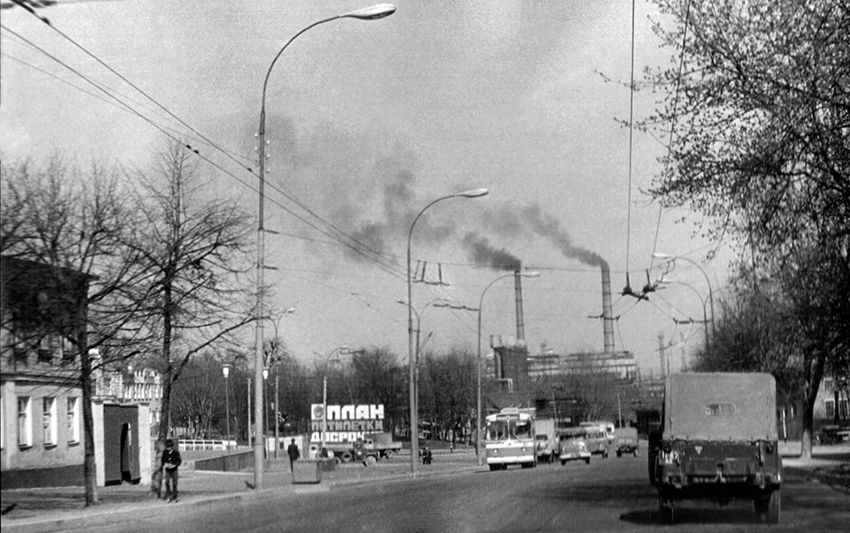 Улица Фрунзе, 1973 г. Автор Владимир Скворцов Площадь Фрунзе. Слева Молодежный сквер, справа памятник Фрунзе.