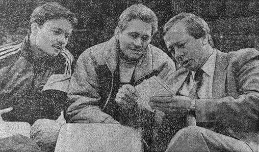 Артёмов Владимир Николаевич и Королёв Юрий Николаевич с Андриановым Николаем Ефимовичем на Международном турнире по спортивной гимнастике на приз газеты «Москоу ньюс». Март 1984 г.