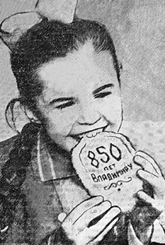 «Кому на русской земле не известны вяземские или тульские пряники? А вот два дня назад в буфете владимирской столовой № 12 стали продаваться совсем необычные пряники. Своей формой они напоминают... Нет, лучше расскажем все по порядку. Почти каждый владимирец готовит подарки юбилею родного города. Производственники выпускают сверхплановую продукцию, начинающие поэты слагают стихи. Ну, а что мог придумать шеф-повар А.А. Воронин? Идея пришла неожиданно. Проезжая на троллейбусе мимо фабрики имени XX съезда КПСС, Воронин остановил взгляд на декоративном панно, на синем поле которого ярко выделялась цифра — 850. «И как это я раньше, не сообразил,— подумал повар. — Нет, не торт это должен быть, не пирог... Вот. Пряник...» Так и появился пряник, формой своей напоминающий древнерусский щит. Названия он пока не имеет, Может быть, когда его станут делать не только в столовой № 12, он получит название — «Владимирский». Не в этом дело. Главное, пряник красив и вкусен. Иначе эта школьница не стала бы есть его с таким удовольствием. *** По улицам города Владимира стали курсировать еще пять новых комфортабельных троллейбусов, выпущенных заводом имени Урицкого г. Энгельса. Теперь троллейбусный парк областного центра насчитывает 50 машин. Ко дню празднования 850-летия Владимира город получит еще десять троллейбусов. Пополняется в областном центре и таксомоторный парк. Недавно автоколонна № 113 получила 5 новых автомашин марки «Волга».