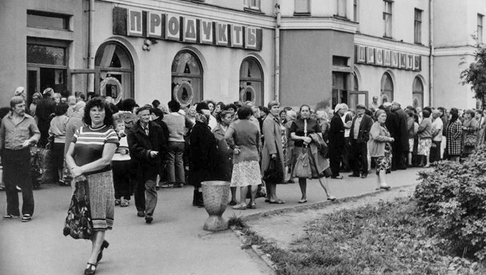 Очередь у продовольственного магазина. Проспект Ленина. 1990 г. Филимонов Владимир