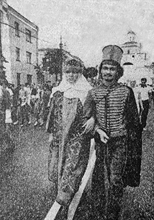 В ПОЛДЕНЬ У ЗОЛОТЫХ ВОРОТ У каждого праздника есть свое торжественное начало, и хотя устроители стремились к возможно меньшей парадности и официальности, нужна была точка отсчета, которая бы провозгласила открытие Дня города. Ровно в полдень у Золотых ворот зазвучали позывные, и люди, собравшиеся возле уникального архитектурного сооружения, ставшего символом города уже в незапамятные времена, тепло приветствовали ветеранов войны и труда, вписавших немало славных строк в историю Владимира, руководителей города и области, представителей делегаций городов-побратимов и городов-соседей, прибывших на праздник из Иванова, Мурома, Коврова, Ужгорода и Усти-на-Лабе. Председатель исполкома городского Совета народных депутатов В.А. Кузин, открывая День города, назвал имена владимирцев, внесших достойный вклад в историю культуры и общественной жизни нашей страны, которым мы, живущие сегодня, должны гордиться и гордимся, чьи деяния во славу Отечества должны мы крепить и приумножать. Развивая эту мысль, делегат XIX Всесоюзной партийной конференции, слесарь производственного объединения «Владимирский тракторный завод имени Жданова» В.М. Коробкин призвал владимирцев активно участвовать в перестройке общественной, экономической, политической жизни нашего общества. 27—28 августа во Владимире проходили Дни газеты ЦК КПСС «Социалистическая индустрия», которые органично вписались в празднование 880-летия города Владимира. Встречи работников редакции с трудовыми коллективами города, острые дискуссии, размышления о судьбах перестройки — все это капитал газеты, ее журналистов, подчеркнул в своем выступлении редактор отдела науки, член редколлегии газеты «Социалистическая индустрия» Д.А. Пипко. Более двадцати лет связывают узы братства древний Владимир с северо-чешским городом Усти-на-Лабе. За это время взаимообогащение в области культуры и экономики принесло обоим городам немало пользы. И, конечно же, на праздник друзей приехали побратимы. От имени делегации из Усти-на-Лабе выступила секретарь районного комитета Союза чехословацко-советской дружбы И. Рыдвалова. В далеком уже 1944 году, когда только-только образовалась Владимирская область, наши войска с тяжелыми боями освобождали Закарпатскую Украину. Владимирцы, сами обездоленные войной, подали руку помощи освобожденным от фашистского засилья: присылали семена, медикаменты, одежду, провизию. Такое не забывается. И постоянно крепнут деловые и дружественные связи городов Владимира и Ужгорода. О крепости и надежности этих связей говорила секретарь Ужгородского горкома КПСС Е.М. Пшенишнюк. От Золотых ворот отправляется кортеж автомобилей — на возложение цветов к памятникам и мемориальным сооружениям города, связанным с историей, революционной, боевой, трудовой доблестью владимирцев. В чаше на Козловом валу вспыхивает «огонь памяти». Праздник открыт, и он начинает свое шествие по улицам и площадям города.