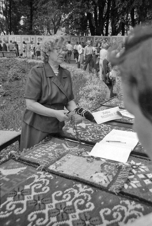 Самодеятельная художница Федорина Н.С. на выставке-продаже в парке «Липки» в День города Владимира. 28 августа 1988 г. Фото Скуратова Сергея Юрьевича