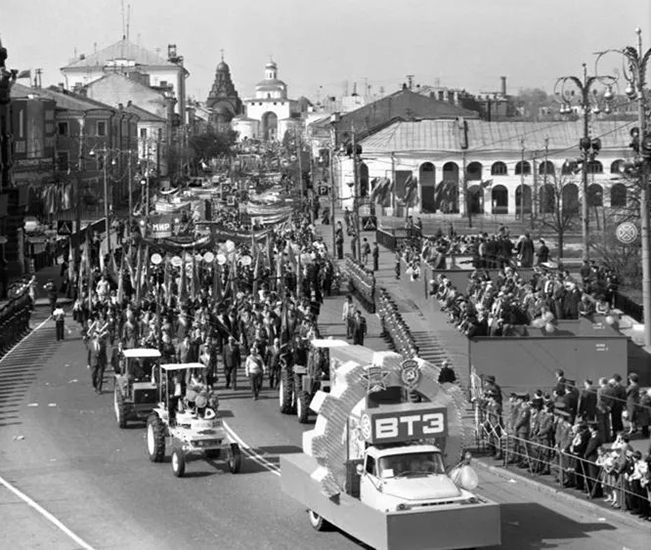 Колонна ВТЗ на первомайской демонстрации 1983 г.